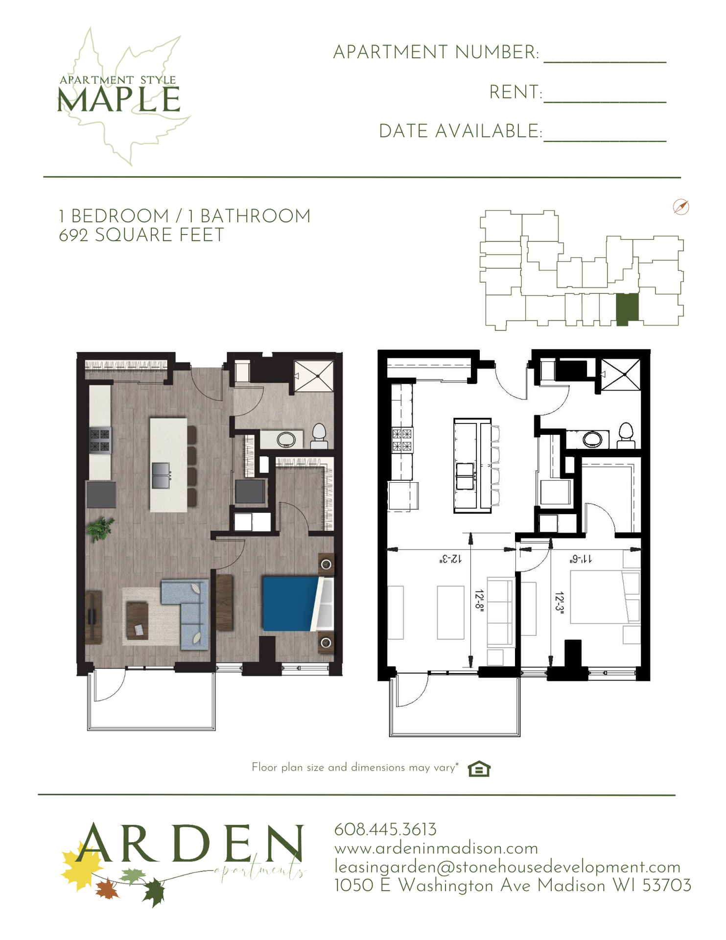 Maple Floor Plan - 1 Bedroom - Downtown