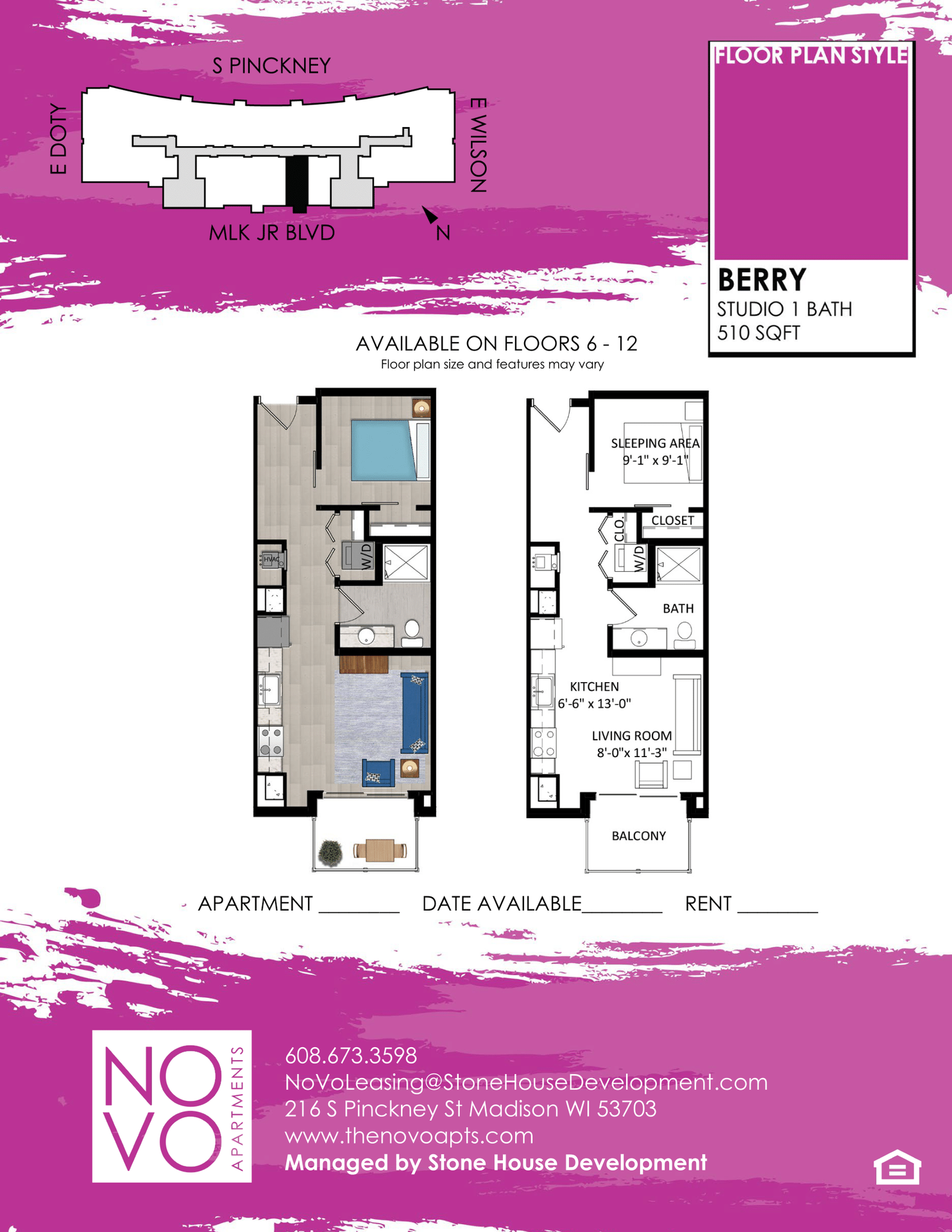 Berry Floor Plan - Studio - Downtown