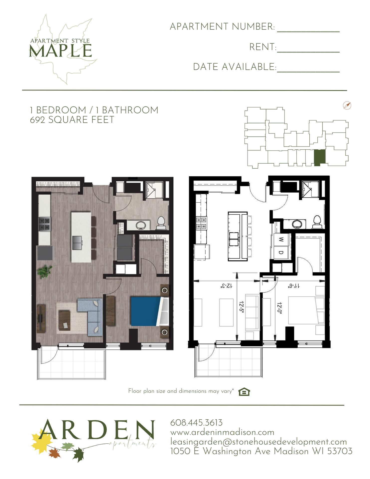 Maple (ADA) Floor Plan - 1 Bedroom - Downtown